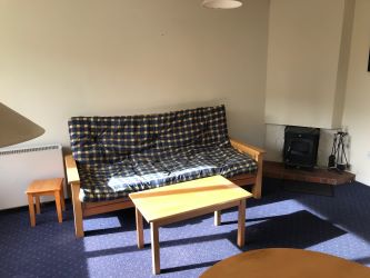 Open Plan Living/Dining Area 4.0m x 2.8m Carpeted, TV Point, Open Fire with Wood Burning Stove.